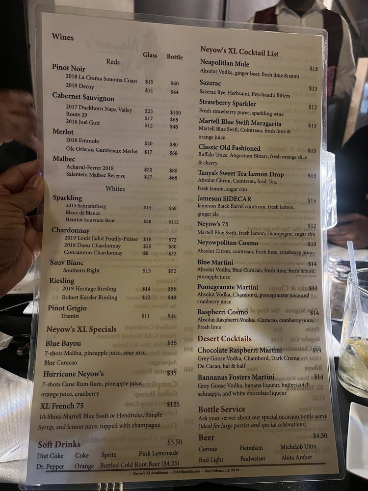 Neyow’s XL Steakhouse Menu (Update 2025)